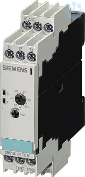 Temperaturüberwachungsrelais PT100, Überschreitung 1 Schwellwert, Breite 22,5 mm -50 °C bis 50 °C AC/DC 24 V 1 S + 1 Ö, Ruhestromprinzip Federzuganschluss !!!Auslaufprodukt!!! Der präferierte Nachfolger ist 3RS2500-2AA30 Temperaturüberwachungsrelais SIRIUS 3RS10 für die Messung von Temperaturen in festen, flüssigen und gasförmigen Medien, z. B. zum Steuern und Regeln von Prozessen oder zum Schützen von Motoren und Anlagen vor unzulässigen Temperaturen.Die Geräte sind einfach zu bedienen über Drehpotentiometer, die Hysterese ist einstellbar. Die Relais mit zwei Schwellwerten können das Arbeitsprinzip umstellen und sind geeignet für Fühlertypen, wie z.B. PT100, Thermoelement.Die Familie der Temperaturüberwachungsrelais 3RS besteht aus analog und digital einstellbaren Relais zum Anschluss von einem bis zu drei Fühlern (Widerstandsfühler oder Thermoelement). Sie sind erhältlich mit abnehmbaren Schraub- oder Federzugklemmen. Die Anzeige erfolgt wahlweise in °C oder °F. Ebenso sind Varianten mit Kommunikation über IO-Link verfügbar.Als Zubehör stehen Bezeichnungsschilder, Einstecklaschen und plombierbare Abdeckkappen zur Verfügung.SIRIUS Relais - ein Programm für alle Fälle.