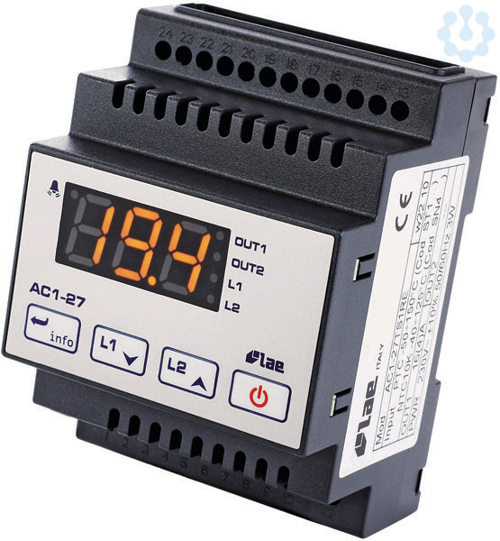 Temperaturregler Verteilereinbau (4TE), zur Regelung der Temperatur an Rohrleitungen, IP20, einschl. Fühler (PTC1000), IP68, mit 2,00m Leitung, Einsatzbereich -50°C...+110°C (Fühler), Regelbereich: -50°C...+150°C, digitale Anzeige von Betriebs- und Störmeldung, potentialfreier Alarmausgang, Relais 1: 16(4)A Wechslerkontakt, Relais 2: 16(4)A Wechslerkontakt, einschl. Schnittstelle RS485
