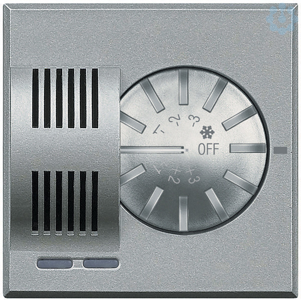 Raumthermostat mit Stellrad zum manuellen Verändern der Solltemperatur um ±3 °C, Frostschutz und Aus, Messbereich 3–40 °C, Kontroll-LEDs für Betrieb und Heizen/Kühlen, Farbe: Aluminium