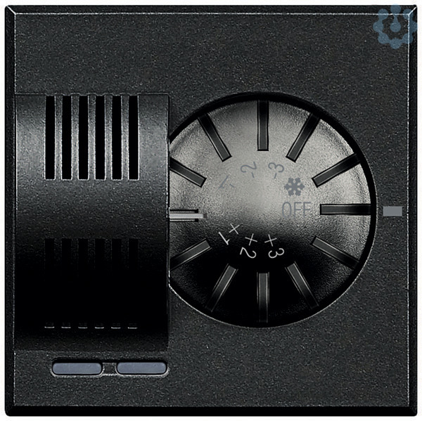 Raumthermostat mit Stellrad zum manuellen Verändern der Solltemperatur um ±3 °C, Frostschutz und Aus, Messbereich 3–40 °C, Kontroll-LEDs für Betrieb und Heizen/Kühlen, Farbe: Anthrazit