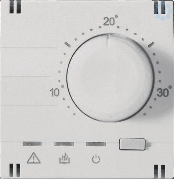 Temperaturregleraufsatz analog weiß, Abdeckung für Einsatz 90500490-DE, Steuerungseinheit mit Zentralscheibe 55x55mm, passend für alle gängigen Schalterfabrikate, zur Montage auf Thermostateinsatz, mit Drehregler, Frostschutzfunktion, Schalter Ein/Aus sowie Kontroll- LED für Ein, Heizen, Kühlen und Frostschutz, Temperaturbereich +5°C bis +30°C, Schaltdifferenz 1K, IP20