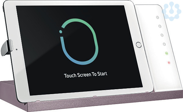 Tisch-Dockingstation mit Ladefunktion, iPad-Verriegelung und Steuerungsfunktionalität, Gehäuse rosé, Glas weiß, Lightning Anschluss, inklusive POE+ Injektor, Audio Ausgang, USB-A Ausgang, kompatibel zu vielen Tablets durch schiebbaren Ladestecker
