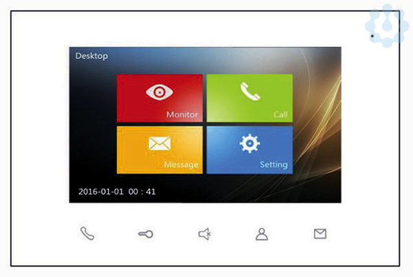 Einstellmöglichkeit der Ruflautstärke, unterschiedlicher Klingeltöne sowie Helligkeit und Kontrast, Rufunterscheidung Ruf Intern, Türstation oder Etagentaster, Bildaufnahme mit automatischem Screenshot, SD-Kartenanschluss 2-32 GB für Videoaufnahmen, 4 Monitore parallel je Klingeltaste möglich ( ohne weitere Zusatzgeräte ), Spannungsversorgung 30 V DC, Farbe: weiß