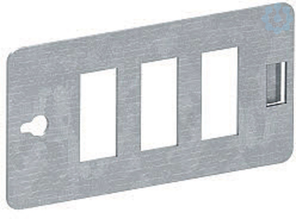 Trägerplatte zur Aufnahme von 3 Snap-In Steckverbinder 3-polig in einem Consolidation Point-Gehäuse.