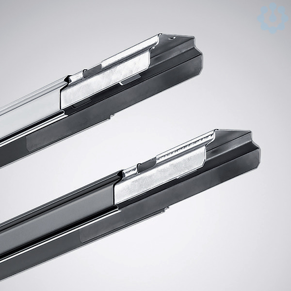 Universal-Tragprofil für E-LineT5N/LED Schnellmontage-Lichtbandsystem. Stahlblech, unterverzinkt, mit silbergrauem Polyesterharzlack beschichtet. 3-längige Ausführung für 3 Geräteträger 1475 mm, Maße (L x B) 4425 mm x 63 mm, Höhe des Tragprofils 41 mm.