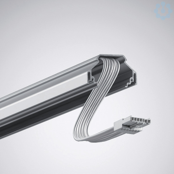 E-Line Tragprofil für LED-Einzelleuchten oder LED-Lichtbandanwendungen in Schutzart IP54. Aus silbergrau eloxiertem Aluminium. 1-längige Ausführung für 1 Geräteträger. Maße des Tragprofils (LxBxH): 1507 mm x 88 mm x 43 mm. Mit 7-Leiter Durchgangsverdrahtung zur Aufteilung der Schaltkreise sowie zusätzlicher 7-Leiter Duchgangsverdrahtung zur Unterstützung von Zusatzandwendungen im Bereich Notlicht oder Lichtmanagement. Mit zwei 7-poligen Buchsen-Stecker-Paaren zum elektrischen Schnellanschluss sowie berührungssicherem Abschluss der Leitungsenden. Wärmebeständige Durchgangsverdrahtung mit Einzeladern, werksseitig komplett ausgeführt. Querschnitt der Einzeladern: Ø 2,5 mm2 Hinweis zur Planung:Je Kupplungsstelle muss zusätzlich ein Längenfaktor von 3mm eingeplant werden.