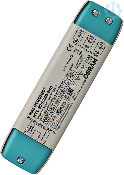 Elektronische Trafos für Halogen-Niedervolt-Lampen. Produkteigenschaften: Netzfrequenz: 50…60 Hz. Funkentstörung: nach EN 55015 (A1: 2007)/CISPR 15, EN 55022. Netzstromoberwellen nach EN 61000-3-2. Immunität, Störfestigkeit nach EN 61547. Sicherheit: nach EN 61347. Kurzschlussschutz, Überlastschutz, Übertemperaturschutz: elektronisch reversibel. Galvanische Trennung zwischen Primär- und Sekundärseite. Sekundärseitiges Schalten zwischen elektronischem Trafo und Lampe nicht zulässig. Energieeffizienz: ≥ 91 % (gemäß ErP-Verordnung 2012/1194/EC). Dimmbar über Phasenanschnitt und Phasenabschnitt. Produktvorteile: Sehr geringe Verlustleistung durch hohe Effizienz. Durchverdrahtung auf der Primärseite möglich. Großer Temperaturbereich. Lampenschonender Betrieb im gesamten Teillastbereich für lange Lampenlebensdauer. Hohe Effizienz und Zuverlässigkeit. Anwendungsgebiete: Effekt- und Akzentbeleuchtung. Wohnzimmer. Objektbeleuchtung. Konferenzräume. Restaurants. Möbeleinbau- und Möbelaufbauleuchten. Shopbeleuchtung. Veranstaltungsräume.