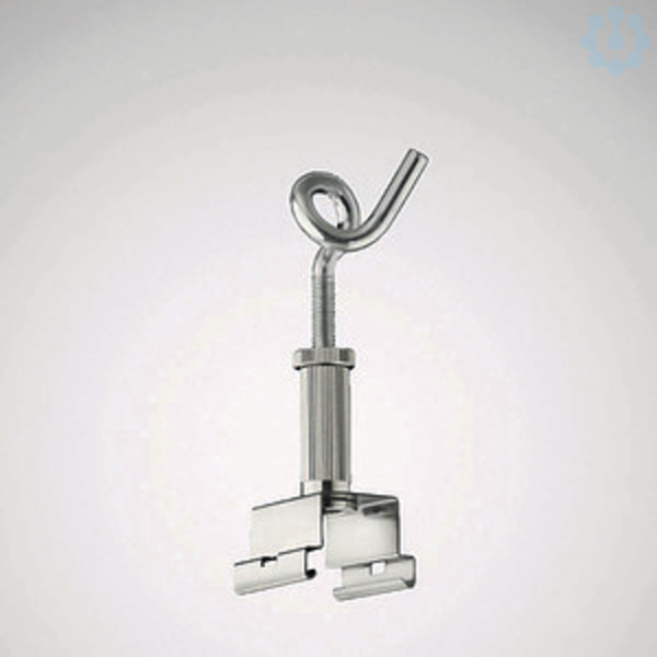 Aufhängeklammer mit Spiralösensystem. Abhängelänge stufen- und werkzeuglos verstellbar. Für Kettenabhängungen. Werkzeuglose Befestigung am Tragprofil.