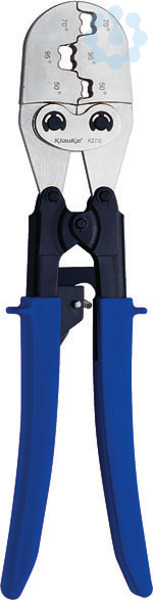 Geeignet für Kastenklemmen. Spezialausführung, besonders für ausgedünnte. feindrähtige Leiter geeignet. Je Querschnitt ein Pressprofil. Mit Sperrvorrichtung für gleichmäßig kontrollierte Pressergebnisse. Seitliche Hülseneinführung (Seitenpressung). Exakte Querschnittszuordnung durch daürhafte Markierung auf dem Presswerkzeug. Handgriffe mit Abgleitschutz.