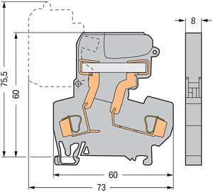 Trennklemme 4qmm grau 0,08-4qmm m.schwenkb. Trenner
