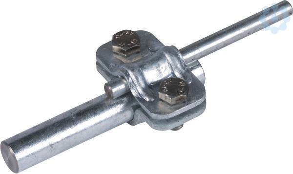 UNI-Trennklemme nach DIN EN 62561-1, zum Verbinden der Ableitung mit der Erdeinführung. Ausführung ohne Zwischenplatte für Erdeinführungsstangen Rd 16 mm.
