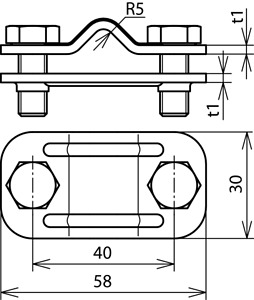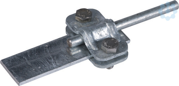 UNI-Trennklemme nach DIN EN 62561-1, zum Verbinden der Ableitung mit der Erdeinführung. Ausführung ohne Zwischenplatte für Rund- und Flachleiter.