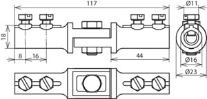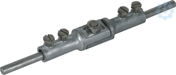 Trennklemme nach DIN EN 62561-1, mit Verbindungsschraube M8. Ausführung für zwei Rundleiter, mit Schrauben M6.