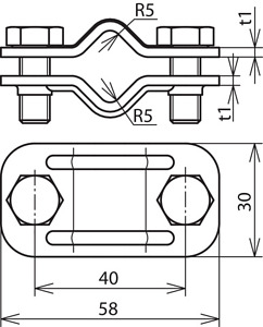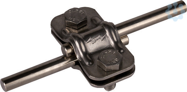 UNI-Trennklemme nach DIN EN 62561-1, zum Verbinden der Ableitung mit der Erdeinführung. Ausführung ohne Zwischenplatte für zwei Rundleiter.