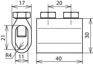 Trennmuffe nach DIN EN 62561-1, zum Verbinden der Ableitungen mit den Erdeinführungen. Ausführung offen, für Erdeinführungen Rd 10 mm.
