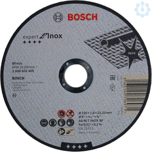 Die Trennscheibe Expert for Inox kombiniert enorme Trennleistung in Stahl mit maximaler Sicherheit. Die Scheibe besteht aus besonders hartem Premium-Aluminiumoxid mit funktionalen Füll- und Zusatzstoffen, die die Wärmeentwicklung beim Schneiden reduzieren. Das Ergebnis sind eine hochwertige Schnittfläche und eine lange Lebensdauer der Scheibe. Zudem ist die Scheibe frei von Eisen, Schwefel und chlorierten Füllstoffen. Das präzisionsgefertigte Glasfasergewebe der Scheibe sorgt für maximale Arbeitssicherheit. Verwenden Sie diese Scheibe zum Schneiden von Stahl. Trennscheiben von Bosch erfüllen die höchsten Sicherheitsanforderungen wie EN 12413, FEPA und oSa.