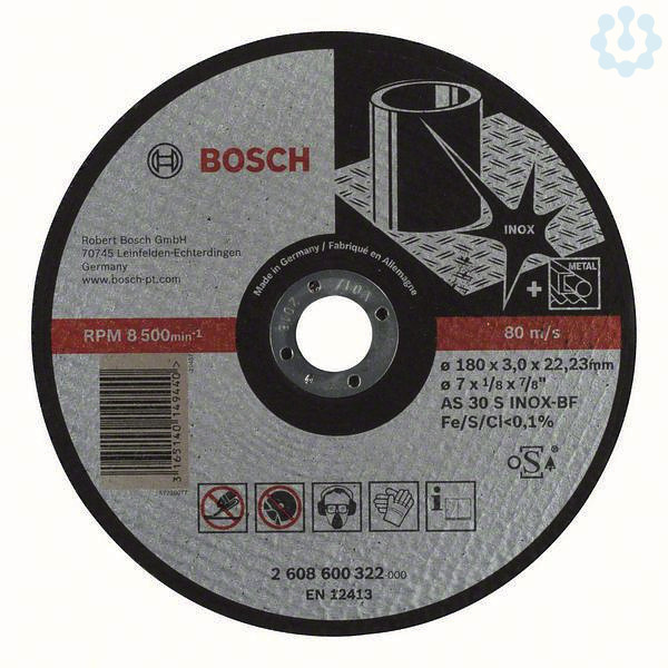Die Trennscheibe Expert for Inox kombiniert enorme Trennleistung in Stahl mit maximaler Sicherheit. Die Scheibe besteht aus besonders hartem Premium-Aluminiumoxid mit funktionalen Füll- und Zusatzstoffen, die die Wärmeentwicklung beim Schneiden reduzieren. Das Ergebnis sind eine hochwertige Schnittfläche und eine lange Lebensdauer der Scheibe. Zudem ist die Scheibe frei von Eisen, Schwefel und chlorierten Füllstoffen. Das präzisionsgefertigte Glasfasergewebe der Scheibe sorgt für maximale Arbeitssicherheit. Verwenden Sie diese Scheibe zum Schneiden von Stahl. Trennscheiben von Bosch erfüllen die höchsten Sicherheitsanforderungen wie EN 12413, FEPA und oSa.