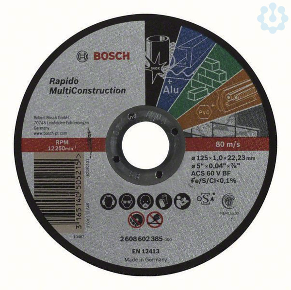 Die Trennscheibe Rapido – Multi Construction schneidet verschiedene Materialien schnell und mit hoher Leistung. Die spezielle Schleifmittelgemisch eignet sich für verschiedene Materialien. Die dünne Scheibe gewährleistet zudem einfaches und schnelles Arbeiten mit wenig Kraftaufwand, Geräuschentwicklung und Staubbildung. Verwenden Sie diese Scheibe zum Schneiden von Metall, Stahl, NE-Metallen, Stein, Marmor und Kunststoff. Trennscheiben von Bosch erfüllen die höchsten Sicherheitsanforderungen wie EN 12413, FEPA und oSa.