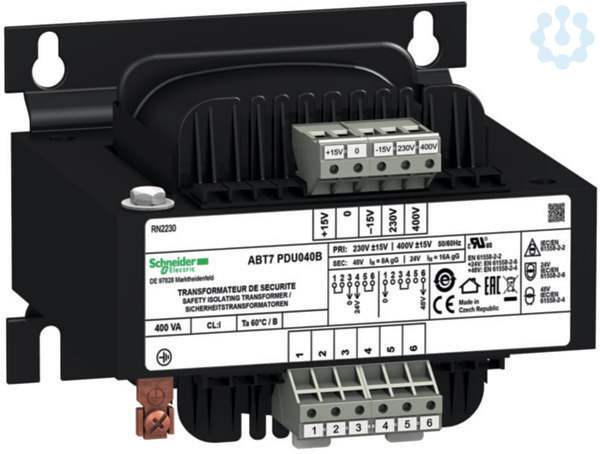 Die Sicherheits- und Trenntransformatoren der Baureihe Modicon ABT7 bieten eine wirtschaftliche Möglichkeit, jeden Verbraucher einzeln oder gruppenweise zu versorgen, z.B. im Bergbau oder in der Raffinerie. Die kompakten Transformatoren eignen sich ideal für Systeme, die mit Niederspannungs-Wechselstrom versorgt werden, wie z.B. Motorschutzrelais und Schütze. Dieser Transformator verfügt über eine Nenneingangsspannung von 230/400V AC, eine Nennausgangsspannung von 2x 24V AC sowie eine Nennleistung von 400VA. Aufgrund der Vielzahl von vorhandenen Produktstandards und Zertifizierungen geeignet für den internationalen Einsatz. Dank des Green Premium Umweltzeichens können Sie detaillierte Informationen zu Materialinhalten, Umweltauswirkungen und Kreislaufwirtschaft erhalten, die Ihre Nachhaltigkeitsziele unterstützen.