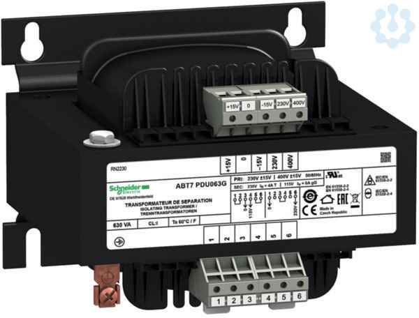 Die Sicherheits- und Trenntransformatoren der Baureihe Modicon ABT7 bieten eine wirtschaftliche Möglichkeit, jeden Verbraucher einzeln oder gruppenweise zu versorgen, z.B. im Bergbau oder in der Raffinerie. Die kompakten Transformatoren eignen sich ideal für Systeme, die mit Niederspannungs-Wechselstrom versorgt werden, wie z.B. Motorschutzrelais und Schütze. Dieser Transformator verfügt über eine Nenneingangsspannung von 230/400V AC, eine Nennausgangsspannung von 2x 115V AC sowie eine Nennleistung von 630VA. Aufgrund der Vielzahl von vorhandenen Produktstandards und Zertifizierungen geeignet für den internationalen Einsatz. Dank des Green Premium Umweltzeichens können Sie detaillierte Informationen zu Materialinhalten, Umweltauswirkungen und Kreislaufwirtschaft erhalten, die Ihre Nachhaltigkeitsziele unterstützen.
