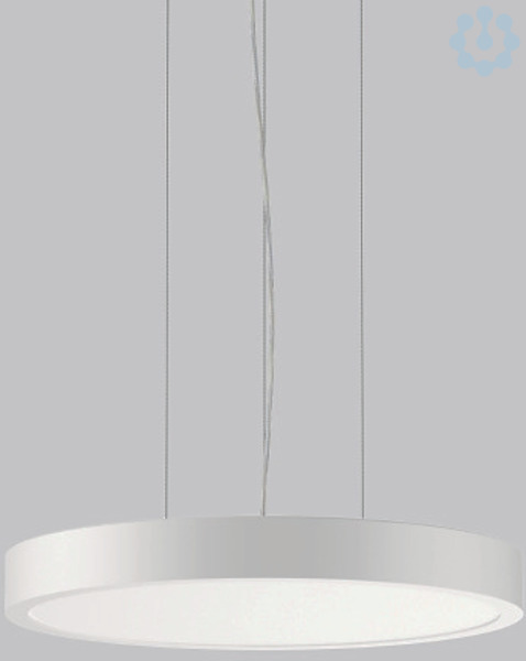 Dekorative runde LED Pendel-Flächenleuchte. Flacher nahtloser Rahmen Aluminium-Strangpressprofil pulverbeschichtet. Abdeckung Stahlblech pulverbeschichtet. Baldachin Aluminium pulverbeschichtet. Direkter Lichtaustritt über Diffusor Kunststoff opal. Indirekter Lichtaustritt über flächenbündigen Diffusor aus Kunststoff satiniert. Diffusor und Lightguide aus vergilbungsfreiem Kunststoff (PMMA). Seitliche Lichteinkopplung (RZB SIDELITE®-Technologie) für überdurchschnittlich homogene Leuchtdichteverteilung und randlose Ausleuchtung. Lichtaustritt direkt 70%, indirekt 30%. 3-Punkt Stahlseilabhängung stufenlos höhenverstellbar. Einfache Montage mit transparenter, kürzbarer Pendelleitung und Baldachin mit Magnetbefestigung. Betriebsgerät integriert.