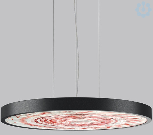 Dekorative runde LED Pendel-Flächenleuchte. Flacher nahtloser Rahmen Aluminium-Strangpressprofil pulverbeschichtet. Abdeckung Stahlblech pulverbeschichtet. Baldachin Aluminium pulverbeschichtet. Lichtaustritt über Diffusor aus handgefertigtem Farbglas FerroMurano rot. Seitliche Lichteinkopplung (RZB SIDELITE®-Technologie) für überdurchschnittlich homogene Leuchtdichteverteilung und randlose Ausleuchtung. Tunable White Versionen dynamisch einstellbar von 2700 K bis 6500 K. 3-Punkt Stahlseilabhängung stufenlos höhenverstellbar. Einfache Montage mit transparenter, kürzbarer Pendelleitung und Baldachin mit Magnetbefestigung. Betriebsgerät integriert. Mit Casambi smart+free Bluetooth® Steuerung zur drahtlosen Vernetzung und Bedienung mittels Android / iOS Gerät, kostenlose App zum Download verfügbar. Prädestiniert für den Einsatz im Rahmen des Human Centric Lighting (HCL) in Verbindung mit RZB-Lichtmanagementsystemen.