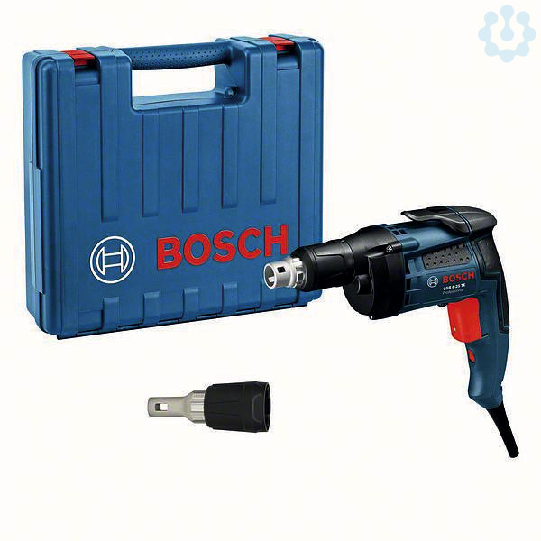 Trockenbauschrauber GSR 6-25 TE. Der kabelgebundene GSR 6-25 TE Professional ist ein kräftiger Trockenbauschrauber. Sein hohes Drehmoment ermöglicht kraftintensive Verschraubungen in Festmaterialien. Durch die ergonomische Bauweise und den Tiefenanschlag kann das Elektrowerkzeug komfortabel und mühelos mit einer Hand bedient werden. Dieser Trockenbauschrauber ist auf Präzision ausgelegt und besitzt eine exakt arbeitende Abschaltkupplung zum Schrauben auf konstante Tiefe. Das Elektrowerkzeug ist für die Befestigung von Trockenbauschrauben in Materialien für Unterkonstruktionen wie Holz und Metall vorgesehen. Es ist kompatibel mit dem MA 55 Professional Magazinaufsatz für Bosch Trockenbauschrauber. Der GSR 6-25 TE Professional verfügt über Funktionen wie Autolock, Gürtelclip/Haken, austauschbarer Tiefenanschlag, Rechts-/Links-Lauf und Drehzahlvorwahl. Im Lieferumfang enthalten: Handwerkerkoffer (2 605 438 620), Tiefenanschlag (2 607 002 585), Tiefenanschlag (2 607 002 586), Universalhalter magnetisch (2 607 000 157), 1x Schraubendrehereinsatz (Bit) Ph 2, Gürtelclip (ET-Nr. 2 601 329 113)