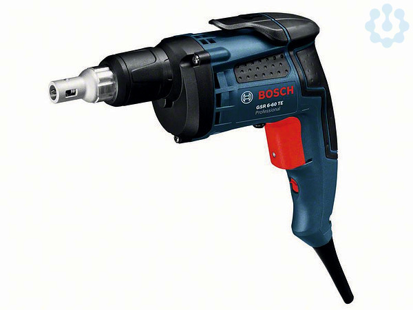 Trockenbauschrauber GSR 6-60 TE, Der kabelgebundene GSR 6-60 TE Professional ist der schnellste Bosch Trockenbauschrauber. Sein kraftvoller Motor liefert eine hohe Drehzahl und ermöglicht ein sehr schnelles Verschrauben in weichen Materialien wie z. B. Gipskartonplatten. Durch die ergonomische Bauweise und den Tiefenanschlag kann das Elektrowerkzeug komfortabel und mühelos mit einer Hand bedient werden. Dieser Trockenbauschrauber ist auf Präzision ausgelegt und besitzt eine exakt arbeitende Abschaltkupplung zum Schrauben auf konstante Tiefe. Das Elektrowerkzeug ist für die Befestigung von Trockenbauschrauben in Materialien wie Holz und Metall vorgesehen und wurde für das Verschrauben von Gipskartonplatten optimiert. Es ist kompatibel mit dem MA 55 Professional Magazinaufsatz für Bosch Trockenbauschrauber. Der GSR 6-60 TE Professional verfügt über Funktionen wie Autolock, Gürtelclip/Haken, austauschbarer Tiefenanschlag, Rechts-/Links-Lauf und Drehzahlvorwahl. Handwerkerkoffer (2 605 438 620); Tiefenanschlag (2 607 002 585); Universalhalter magnetisch (2 607 000 157); 1 x Schraubendrehereinsatz (Bit) Ph 2; Gurthalteclip (ET-Nr. 2 601 329 113)