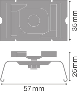 Rasterdeckenmontageclip für Tragschienen. Produkteigenschaften: Ein Montageclip zur Anbaumontage an Rasterdecken.