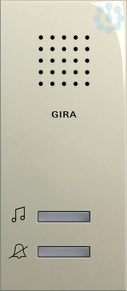 Gong APSystem 55Cremeweiß glänzendMerkmale: Der Gong AP dient im Gira Türkommunikations-System zur zusätzlichen Signalisierung. Komplett vormontierter Gong AP. Dadurch schnelle und saubere Montage möglich. Designvielfalt durch Integration, dadurch einheitliches Erscheinungsbild von Türkommunikation und Elektroinstallation. Montage sowohl mit als auch ohne Abdeckrahmen möglich. Einfache Montage durch abziehbare Schraubklemmen. Einfache Demontage des Geräts bei Renovierungsarbeiten. Befestigungslöcher für die Montage. Signalübertragung und Versorgung des Gong AP über verpolungssicheren und kurzschlussfesten 2-Draht-Bus. Parallelschaltung von bis zu drei Gongs bzw. Wohnungsstationen möglich. Einmann-Inbetriebnahme durch einfache Inbetriebnahme-Prozedur. Bedientasten mit integrierten Leuchtdioden zur Zustandsanzeige. LED-Anzeige bei einem eingehenden Ruf. Möglichkeit der Ruftonabschaltung. Ruftonunterscheidung zwischen Türruf, Internruf und Etagenruf. Ruftonmelodieauswahl - bis zu fünf verschiedene Ruftonmelodien lassen sich auswählen.Die Bedientasten des Gongs steuern die folgenden Funktionen: Einstellen der Ruftonmelodie. Rufton ein- und ausschalten. Einstellung der Ruftonlautstärke.Hinweise : Bei der Montage auf eine Gerätedose ist ein Abdeckrahmen erforderlich. Bei Montage mit Abdeckrahmen ist ein Abdeckrahmen 2fach ohne Mittelsteg erforderlich.