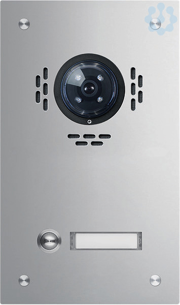 TVG-1/1 Aussenstat. f Kamera-Türlautsprecher 1/1 Rund-Tast. UP Edelst. matt ESTA. Unterputz Video-Türstation für Sprechanlage/Intercom nach DIN EN 50486. Bestehend aus einer 2 mm dicken Frontplatte aus Edelstahl matt gebürstet mit Lochsprechöffnungen, runder Klingeltaster, Spezialschrauben, Namensschild (von vorn wechselbar) mit LED-Beleuchtung, Video-Vorbereitung und UP-Kasten 55 mm Tiefe. Hinweis: Passende Elektronik und Lautsprecher erforderlich.