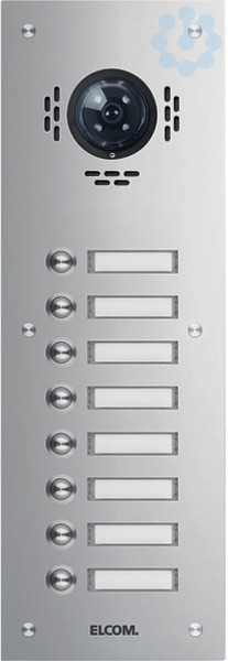 TVG-8/1 Aussenstat. f Kamera-Türlautsprecher 8/1 Rund-Tast. UP Edelst. matt ESTA. Unterputz Video-Türstation für Sprechanlage/Intercom nach DIN EN 50486. Bestehend aus einer 2 mm dicken Frontplatte aus Edelstahl matt gebürstet mit Lochsprechöffnungen, runder Klingeltaster, Spezialschrauben, Namensschild (von vorn wechselbar) mit LED-Beleuchtung, Video-Vorbereitung und UP-Kasten 55 mm Tiefe. Hinweis: Passende Elektronik und Lautsprecher erforderlich.