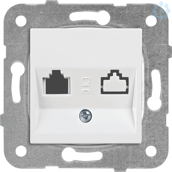UAE-Anschlussdose für ISDN, Farbe weiß, mit Kombi-Zentralscheibe 50x50mm, für Rahmen-Systeme Meridian/Karre/Merida/Novella, Rj-11/12 Buchse für 6-polige Stecker und Schneidklemmtechnik, Anschluss 4-polig