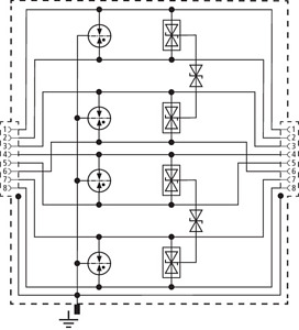 Universeller Überspannungsableiter für GBit Ethernet Applikationen, Power over Ethernet (IEEE 802.3 konform bis PoE++ / 4PPoE) und ähnliche Anwendungen in strukturierten Verkabelungen im Indoor- und Outdoorbereich (IP 66). Schutz aller Adernpaare durch leistungsfähige Gasentladungsableiter und je einer abgestimmten Filtermatrix pro Adernpaar. Voll geschirmte Überspannungsschutzlösung mit RJ 45 Buchsen. Universelle Montagevorrichtung für die wahlweise Mast- oder Wandmontage.