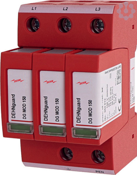 Mehrpoliger Überspannungsableiter DEHNguard M, Typ 2 nach EN 61643-11, bestehend aus Basisteil und gesteckten Schutzmodulen. Hohe Gerätesicherheit durch Ableiterüberwachung mit Thermo-Dynamik-Control. Zum Schutz von Niederspannungs-Verbraucheranlagen vor Überspannungen. Zum Einsatz im Blitz-Schutzzonen-Konzept an den Schnittstellen 0B – 1 und höher.