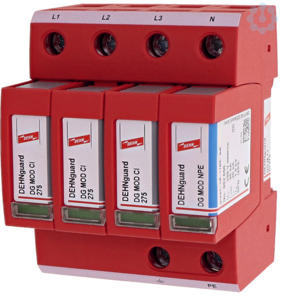 Mehrpoliger Überspannungsableiter DEHNguard M CI, Typ 2 nach EN 61643-11 mit integrierter Ableitervorsicherung, bestehend aus Basisteil und gesteckten Schutzmodulen. Hohe Gerätesicherheit durch Ableiterüberwachung mit Thermo-Dynamik-Control. Zum Schutz von Niederspannungs-Verbraucheranlagen vor Überspannungen. Zum Einsatz im Blitz-Schutzzonen-Konzept an den Schnittstellen 0B – 1 und höher.
