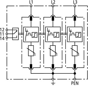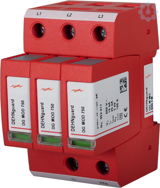 Mehrpoliger Überspannungsableiter DEHNguard M, Typ 2 nach EN 61643-11, bestehend aus Basisteil und gesteckten Schutzmodulen. Hohe Gerätesicherheit durch Ableiterüberwachung mit Thermo-Dynamik-Control. Zum Schutz von Niederspannungs-Verbraucheranlagen vor Überspannungen. Zum Einsatz im Blitz-Schutzzonen-Konzept an den Schnittstellen 0B – 1 und höher.