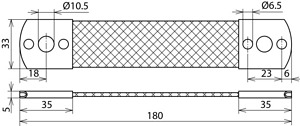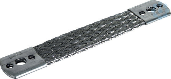 Überbrückungsband nach DIN EN 62561-1, zum Verbinden von Metallverkleidungen durch Nieten oder Schrauben. Ausführung kurz, für die Befestigung mit Bohrschrauben.