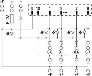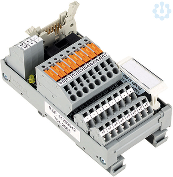 Übergabemodul für Systemverkabelung; Steckverbinder gemäß DIN 41651; Stiftleiste; 10-polig; 8-Kanal-Digitalein- oder -ausgang; 3-Leiter-Anschluss; mit Trennklemme; im Montagesockel
