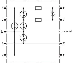 Platzsparendes Überspannungsableiter-Modul zum Schutz von 1 Doppelader eigensicherer Messkreise und Bussysteme, wahlweise direkte oder indirekte Schirmerdung. Isolationsfestigkeit > 500 V Ader-Erde.