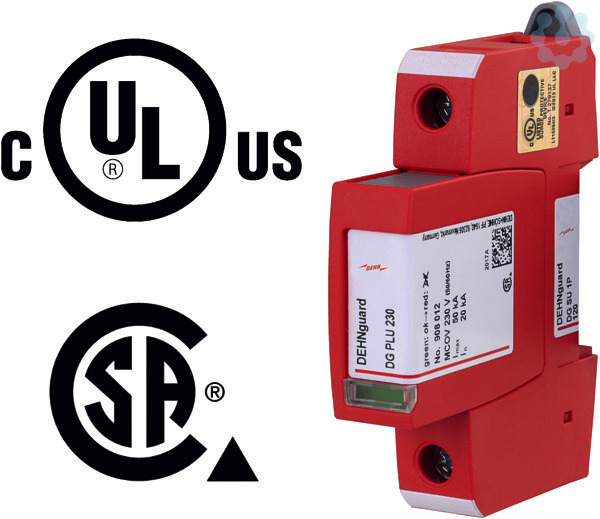 Einpoliger Überspannungsableiter DEHNguard SU, Open-Type 1 SPD nach ANSI/UL 1449 bestehend aus Basisteil und gesteckten Schutzmodulen. Hohe Gerätesicherheit durch Ableiterüberwachung mit Thermo-Dynamik-Control. Ermöglicht Endgeräteschutz. Zum Schutz von Single Phase Systemen.