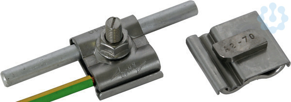 UNI-Erdungsklemme NIRO f. Rd 8-10mm Leiter 4-50qmmm. Schraube M8 u. Mut
