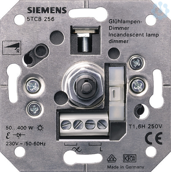 Glühlampendimmer, R mit Drehausschalter UP, 230V 50-60Hz, 60-400W Schraubklemmen für Krallen- und Schraubbefestigung DELTA Schalter und Steckdosen - Design und Qualität in Perfektion von Siemens. Unsere umfangreiche Produktpalette bietet Ihnen durch ihre stilsichere Formen- und Farbvielfalt eine Fülle an individuellen Gestaltungsmöglichkeiten, die die Ästhetik eines jeden Raumes gekonnt unterstreichen. Auch Hochwertigkeit und Langlebigkeit unserer DELTA Schalter und Steckdosen können wir mit unserer hohen Kompetenz in der Herstellung garantieren - vom Einzelteil bis zum fertigen Produkt. Die Siemens Elektronik Geräte für die Installationstechnik bieten umfangreiche Zusatzfunktionen wie: 1. Dimmer für alle gängigen Lasten inclusive LED Beleuchtung. 2. Bewegungsmeldung in Aufputz und Unterputzausführung. 3. Weitere Geräte wie Jalousiesteuerung, Zeitschaltung und auch Raumtemperaturregelung sind verfügbar.