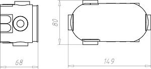 Electronic-Dose ECON®, luftdicht (1068-21). Die Electronic-Dose und Doppel-Geräte-Verbindungsdose mit ECON®-Technik eignen sich speziell für Installationen in Mauerwerkswänden, bei denen der Innenputz den raumseitig luftdichten Abschluss bildet. Die Electronic-Dose ECON® bietet einen großzügigen Geräteeinbauraum und einen zusätzlichen Installationsraum für die Unterbringung von z. B. kleinen Schaltaktoren. Die zugehörige Trennwand ermöglicht die normgerechte Installation von Bus- und Betriebsspannung in einer Dose. Die Doppel-Geräte-Verbindungsdose ECON® schafft einen noch nie dagewesenen Komfort bei der Installation besonderer Einbaugeräte. Die große Einbauöffnung und der riesige Einbauraum ermöglichen z. B. den Einbau von Block- und vorverdrahteten Geräten und schaffen Platz zum Konfektionieren von Leitungen für Multimedia-Anschlüsse. Geräteschrauben: 2 | Länge: 149 mm | Breite: 80 mm | Tiefe: 68 mm