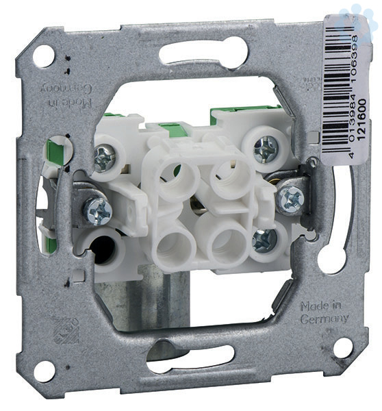 Schaltwerke 10 A 250V AC Schraubklemme Klemmbereich für Kupferleiter 1,5 mm² und 2,5 mm². für den sicheren Anschluss von Aluminiumleitern 2,5 mm² ohne Vorbehandlung Universaltaster mit Leuchtmarkierungsbaugruppe (Aus-/Wechseltaster). 1 Wechsler. mit separatem Neutralleiteranschluss für Leuchtmarkierungsbaugruppe. besonders geeignet für elektronische Treppenlicht-Zeitschalter.