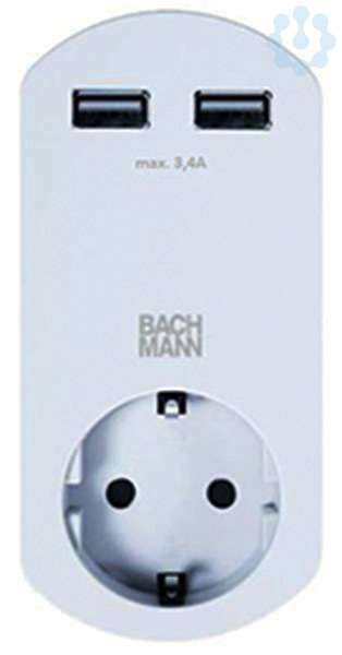SMART Adapter USB 16A / 230V~, weiß, IP20; 1x CEE 7/7 auf CEE 7/3, Ausgang: 2-fach USB Charger; Maximaler Gesamtladestrom: 3,4A (5V)