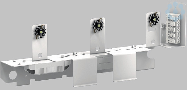 Leuchteneinsatz: Baugruppenträger aus Aluminiumblech pulverbeschichtet.Betriebsgeräte und Anschlussklemme eingebaut. Abmessungen inklusiveLED-Lampen. Leistungsangabe entspricht Wirkleistung. MitÜberwachungsbaustein AC-Control für Luxifair Zentralbatterie-Anlagen.