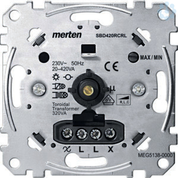 Für ohmsche, induktive sowie kapazitive Lasten, z. B. Glühlampen, dimmbare gewickelte Trafos oder elektronische Trafos. (Phasenanschnitt oder Phasenabschnitt). Der Universaldimmer erkennt automatisch die angeschlossene Last. Keine Mischlasten anschließen. Mit Druck-Wechselschalter. Zu komplettieren mit: Zentralplatte mit Drehknopf System M MEG5250-03xx/-04xx/-06xx Zentralplatte mit transparenter Abdeckung und Drehknopf M-Creativ MEG5250-3500. Zentralplatte mit Drehknopf System Design MEG5250-60xx, System Fläche MEG5250-40xx/-41xx/-42xx Hinweis: Informationen zum Thema Dimmen von LED Leuchtmittelnerhalten Sie im Internet unter Merten Dimmertest. http://www.merten.de/Dimmer-Test.dimmertest.0.html. Ausführung: 20-420 W/VA.