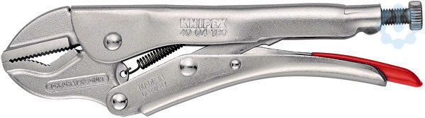 40 04 180 Universal-Gripzange Halten Rund-, Profil- und Flachmaterial sicher fest. Hoch belastbar. Mit Stellschraube und Lösehebel. Einhandbedienung. Hoher Spanndruck durch Kniehebelübersetzung. - Spannkapazität rund: 35mm - Spannkapazität 4-kant: 25mm - Spannkapazität 6-kant: 32mm