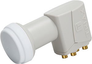 Die Profi-LNB-Serie von TRIAX mit vergoldeten F-Buchsen, bietet optimale Werte in bester Qualität und ist für alle gängigen Offset-Parabolantennen mit Standard-Feedhalter von Ø 40 mm geeignet. QuadLNB für vier Teilnehmer für alle aktuellen Satelliten: z.B. Astra, Eutelsat, Türksat hohe Verstärkung, hohe Entkopplung und optimiertes Phasenrauschen langlebig und witterungsbeständigvergoldete F-Buchsen.